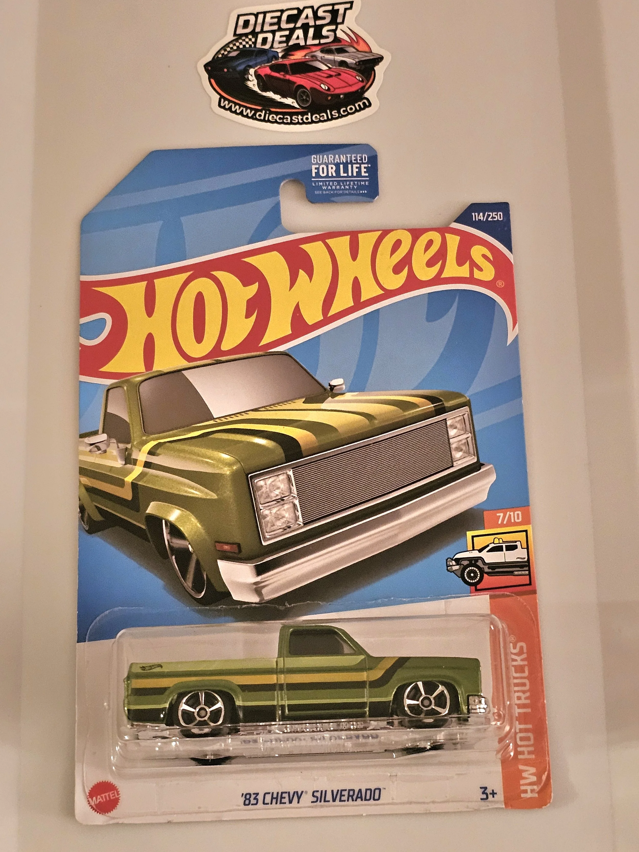 This Chevy Silverado 1983 features a distinctive theme, with a detailed design that captures the essence of the original car. Whether you are looking for a unique addition to your collection or a gift for a car enthusiast, this Hot Wheels model is a great choice.